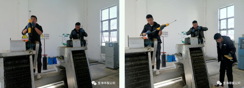 耙齒鏈運(yùn)轉(zhuǎn)到設(shè)備的上部時,由于槽輪和彎軌的導(dǎo)向,使每組耙齒之間產(chǎn)生相對自清運(yùn)動,絕大部分固體物質(zhì)靠重力落下。另一部分則依靠清掃器的反向運(yùn)動把粘在耙齒上的雜物清掃干凈。